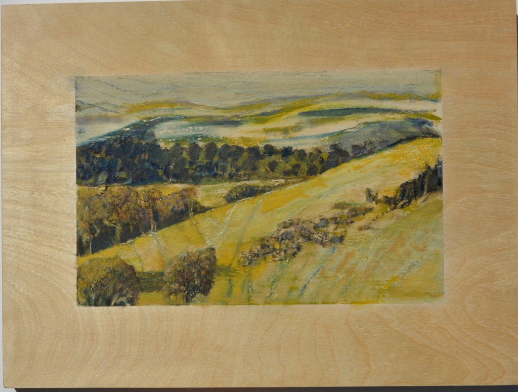 Her paintings and works on wood panel reflect an ongoing interest in the fragile environment of the eastern Mt Lofty Ranges.